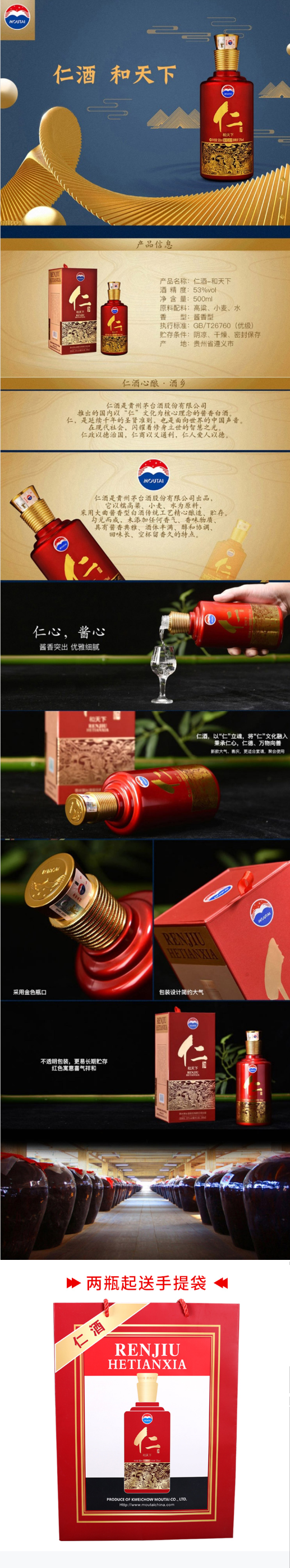 贵州茅台酒股份出品 仁酒 和天下 53度酱香型白酒 500ml/瓶 单瓶装